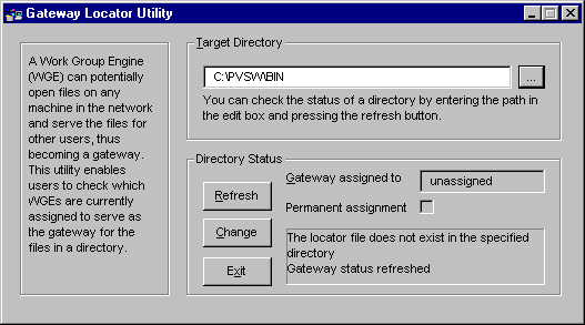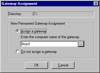 In the Directory Status area, click Change. In the dialog box that appears, click Assign a Gateway, then type in or browse for the network name of the computer that you want to be the Gateway. Click OK.