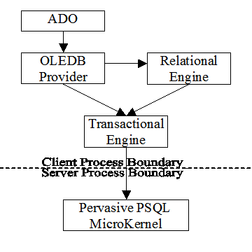 This second version of the provider did have some drawbacks. It was considered a thick client because the relational engine was encapsulated in the provider. Therefore, the provider had to cross the process boundary for each row, which led to performance issues for applications in a client-server setting.