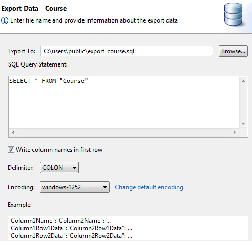 Export Data now allows you to change file encoding and to set a default encoding. Note that the Example inset does