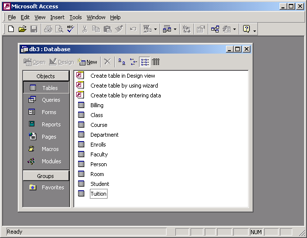 Next, the File New Database dialog box opens and asks you to name the new database. Name the database and click Create.