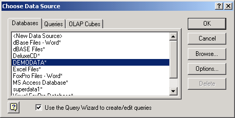 The Select Data Source box lists the defined data sources for any ODBC drivers that are installed on your computer. Click the Machine Data Source tab as shown in the next figure.