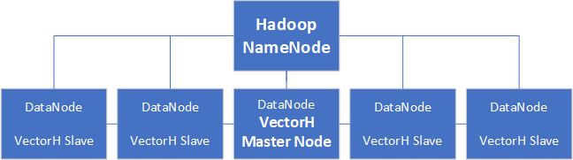 The VectorH engine runs natively within a Hadoop cluster and can use all or a subset of the nodes in a Hadoop cluster. The VectorH installation process is driven from a single DataNode, which becomes the VectorH master node. The master node is a full installation and acts as the primary node for the VectorH instance. The master node drives the setup for the VectorH slave nodes.