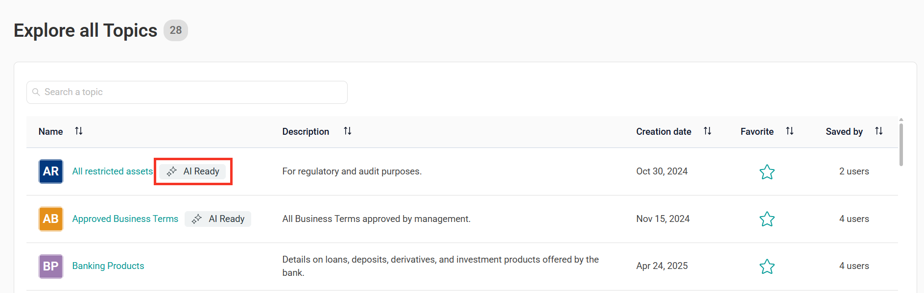 Verify that you are in Explorer and the topic is tagged AI Ready.