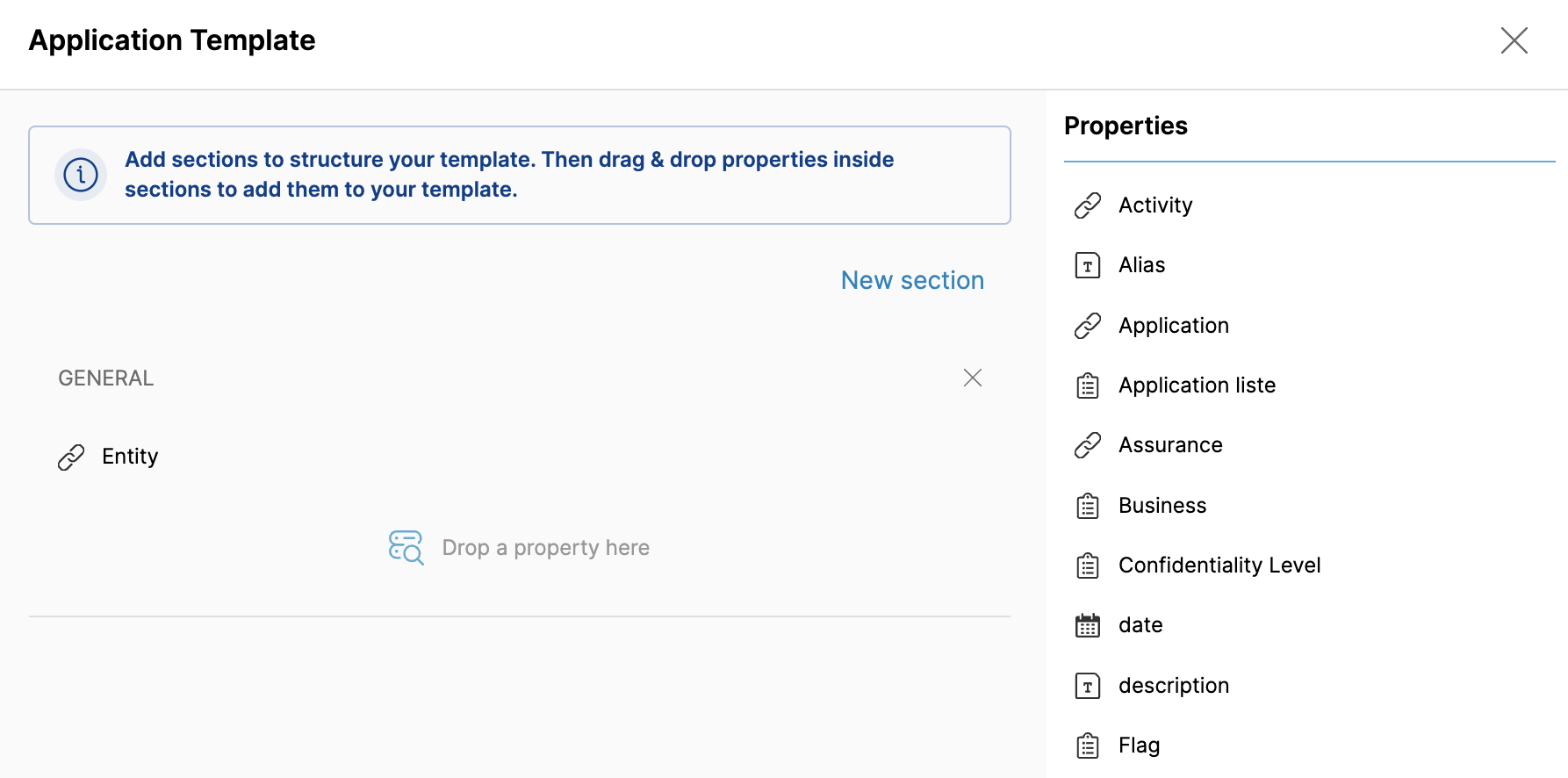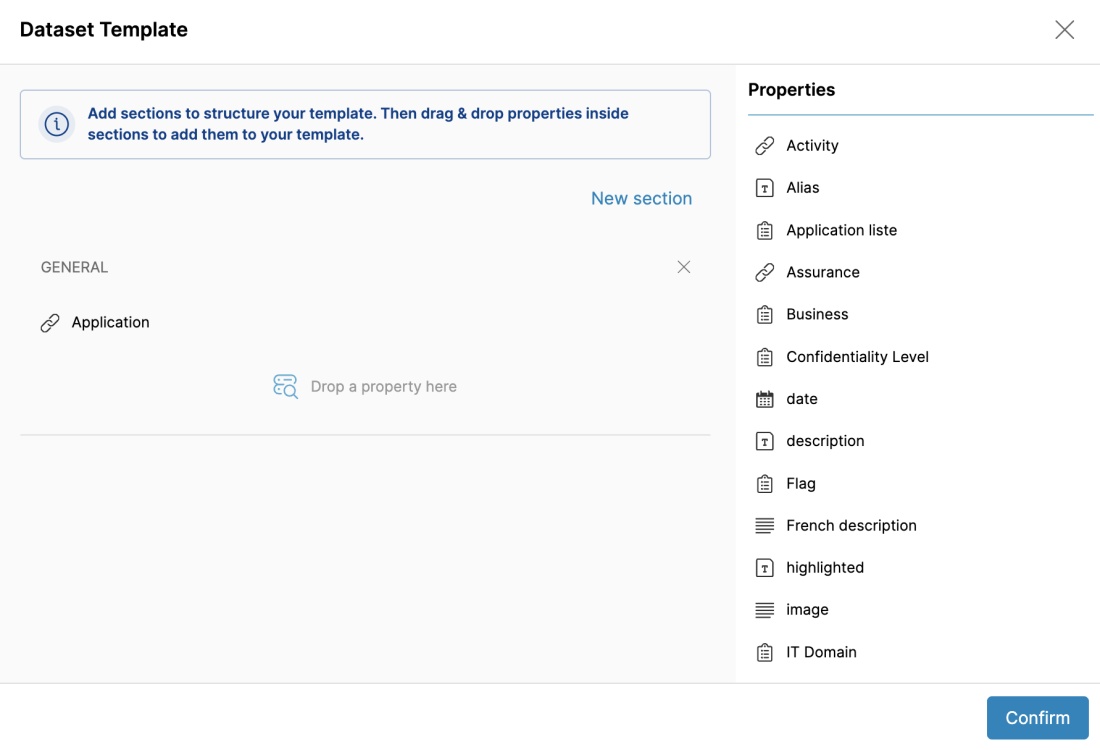 First, add the “Application” property on the Dataset template