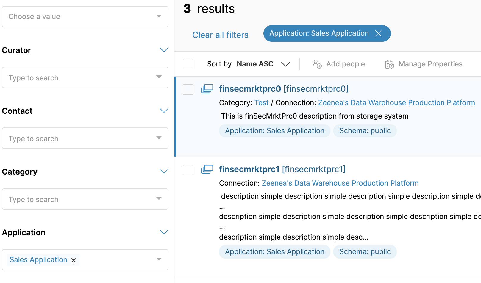 Each type of Custom Item has its own template in the Zeenea metamodel and its own set of attributes: description, contacts, etc… Custom Items can also be linked to other custom types (as well as native objects) in order to provide a richer context.