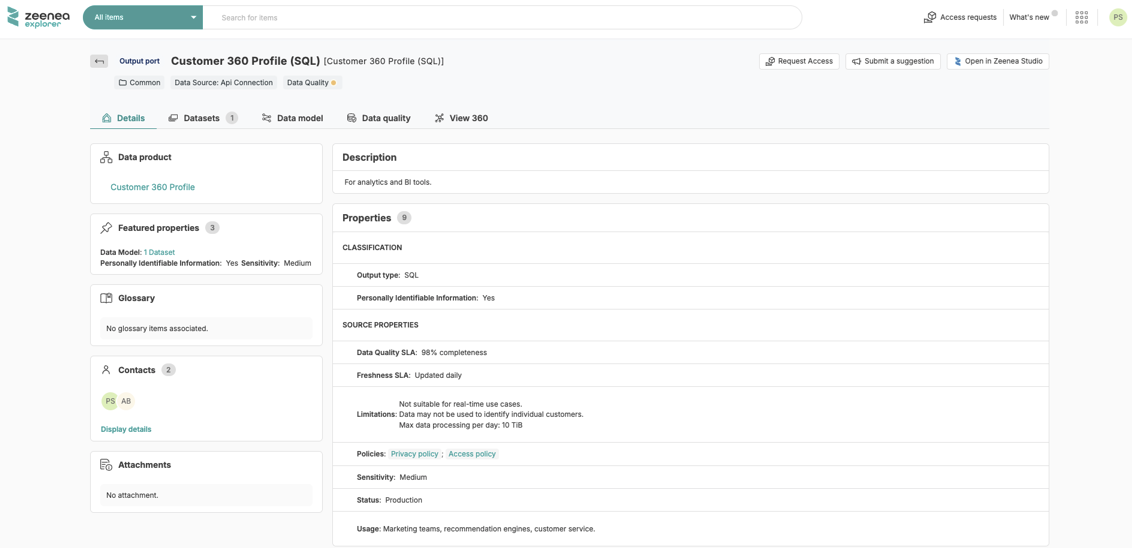 Request access to data products directly in Zeenea Explorer and manage these requests in Zeenea Studio to allow an efficient and governed consumption of the data products.