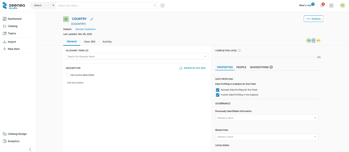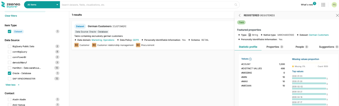 Data Profiling has been enabled in every field where it is relevant. This is done by Data Stewards, on Zeenea Studio, using the option "Activate Data Profiling for this Field".
