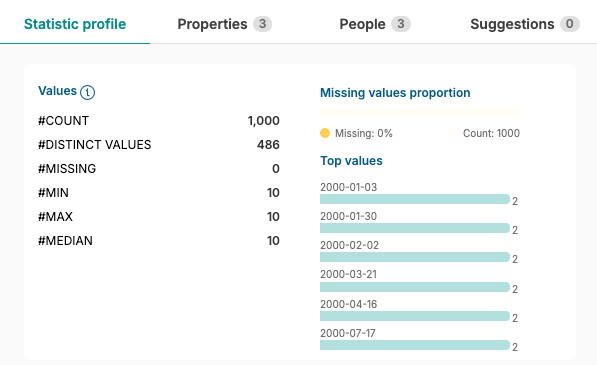 These insights are displayed graphically for each field of a dataset and will show information such as: