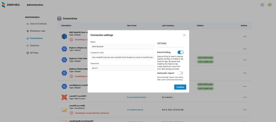 Data Profiling is automatically run based on the connector's configuration. However, it is possible for admins to manually launch the job from the Connections page in the Zeenea Admin interface.