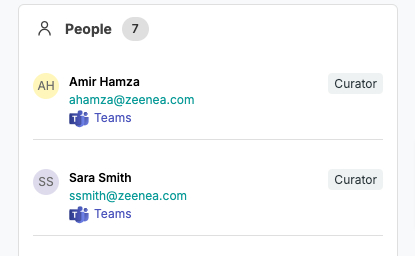 Once activated, Zeenea updates the corresponding contact profiles in the Studio and Explorer with a Teams deep link.