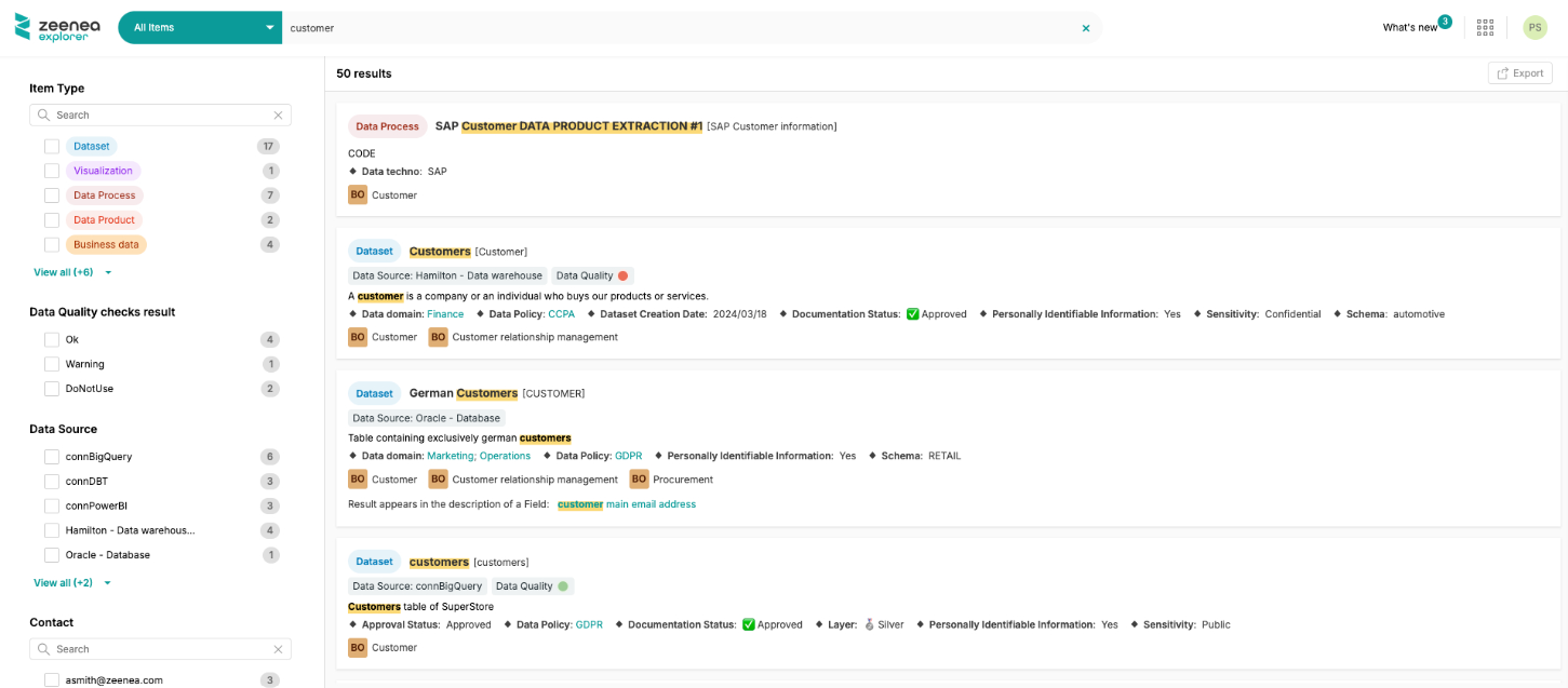 As a Data Explorer, you have access to our dedicated Data discovery application: Zeenea Explorer.