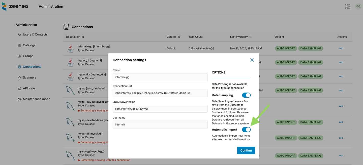 Toggle Automatic import on: