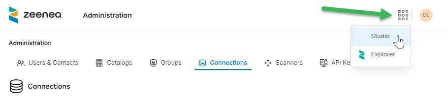 Switch to Zeenea Studio by clicking the apps icon in the upper right and selecting