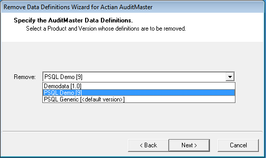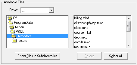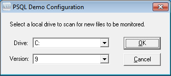 If you have a standard PSQL installation, click OK to accept the default drive C for the PSQL Demo drive location and the version of PSQL. Otherwise, use the list to change to the location of your PSQL database.