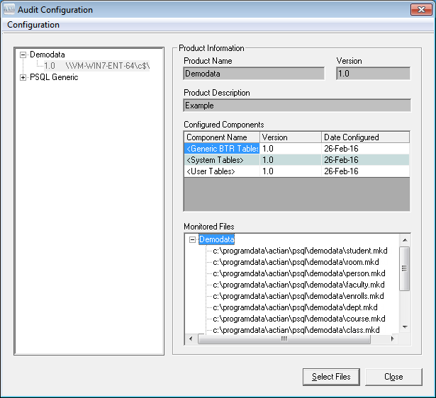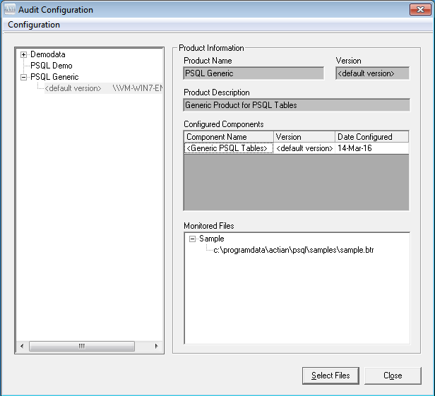 In the left pane of the Audit Configuration window, right-click PSQL Demo and select New Configuration. You may also double-click to open the PSQL Demo Configuration dialog.