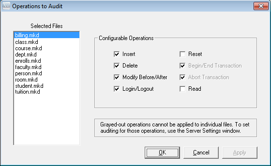 Select the file name billing.mkd, and click Select. You may also double-click the file name to move it to the Files to Be Monitored list.