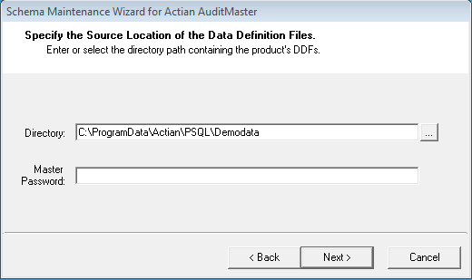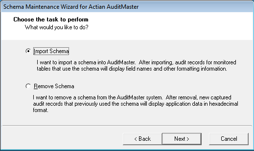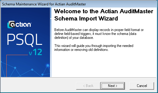 Open Schema Maintenance Wizard from the AuditMaster program group.