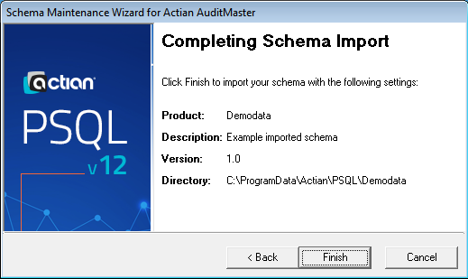 Click Next to see a summary of the schema import. You can click the Back button to make changes.