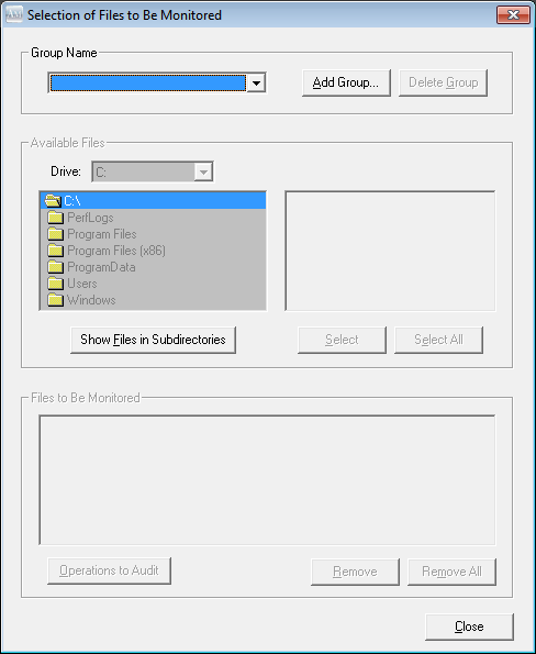 In the Available Files area, navigate through the folder hierarchy to locate files to monitor. Only files in Btrieve format are listed. You may also use the Show Files in Subdirectories button, after double-clicking a folder, to display a list of all Btrieve files from the double-clicked directory downward.