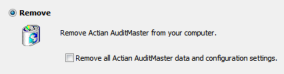2. When you remove AuditMaster, be sure that you do not select the check box to remove existing audit data, configuration settings, queries, and alerts. Leave the default setting clear as shown in the following figure: