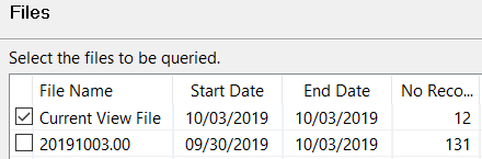 • Under Files, the file checked is the one selected before the Query Builder window was opened. Any other file needed for the query must be manually added.
