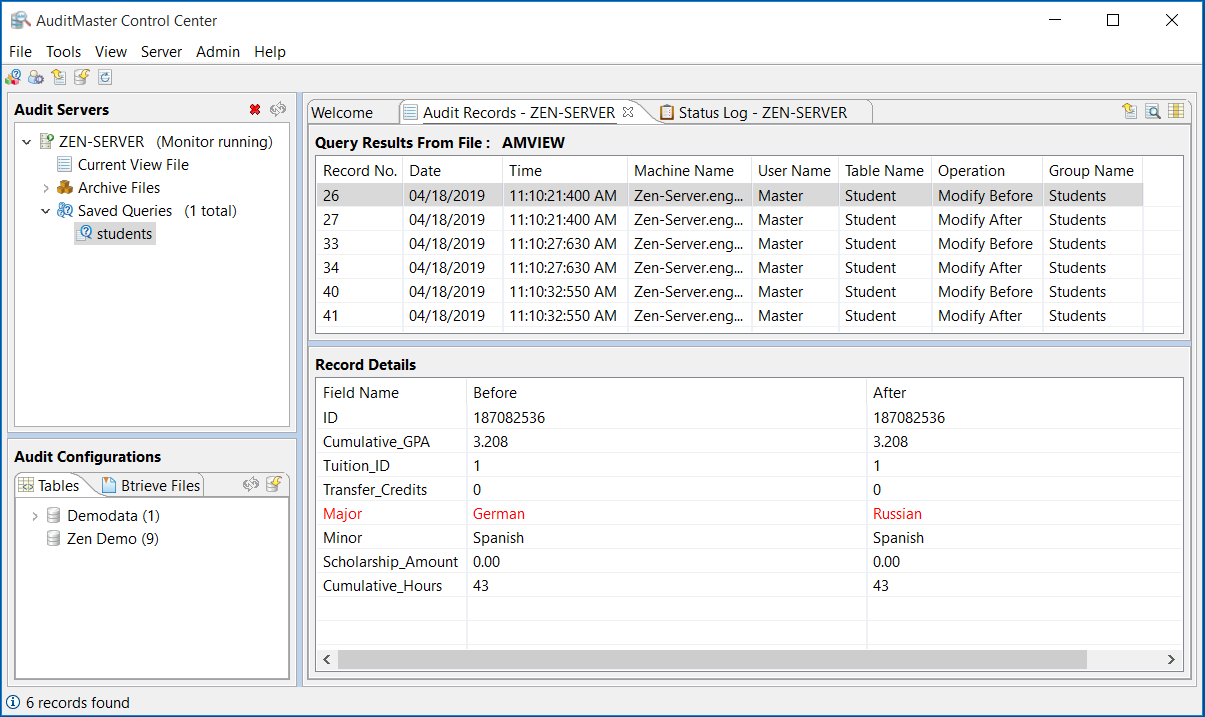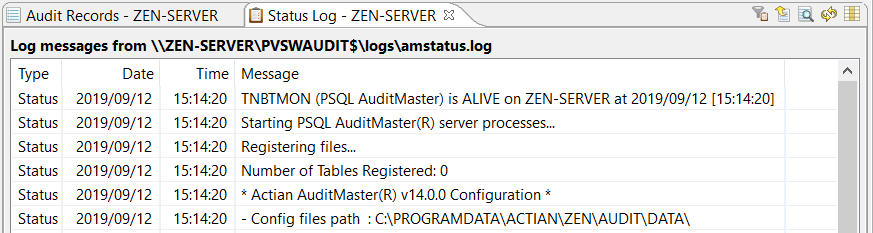 Admin Available only to administrative logins | View Status Log | Displays the status log of AuditMaster activity. |