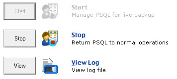 From the Backup Agent initial dialog, click Start to turn the utility on and begin managing your PSQL databases for live backup.