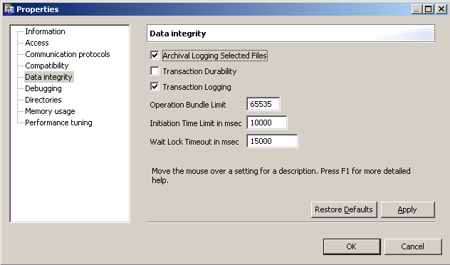 To disable Archival Logging, clear the Archival Logging Selected Files option, click Apply, and then click OK.